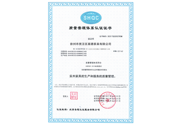 質量管理(lǐ)體(tǐ)系認證證書(shū)
